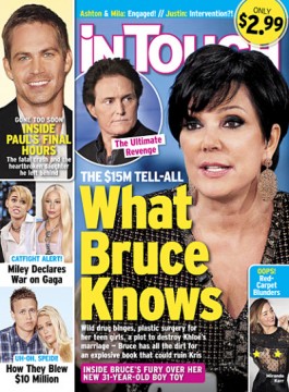 This year’s Kardashian Christmas card , arguably the family’s most bizarre and definitely their most expensive yet, is telling for a number of reasons. Yes, Kim Kardashian is front and center and Kendall Jenner appears to be in the process of being groomed to take Kim’s place under Kris’ emperorship. But the most notable image of all? Bruce Jenner actually showup up for the shoot, but being shoved in the corner, locked in a glass tube and fighting to escape. Some photos really are worth a thousand words. It’s been an embarrassing year for the long-suffering patriarch, now a shell of his former self. And the humiliation he’s endured could cost Kris. “If Bruce Jenner opens up about all of the dirt he has on Kris, he could easily get a book advance of $15 million,” a publishing insider tells In Touch. Adds a Kardashian family friend, apparently worried: “All of her secrets would come out and she’d be completely destroyed. Bruce knows everything.” Yes … but what? And would he really tell all? Given that this is Bruce Jenner, probably not. He just likes to race cars, play golf, hang with his kids, and not be nagged. All in all, a super dude. You can criticize him for a lot of things, but being vindictive or vengeful is just not in his nature. That’s why he took Kris’ crap for so many years. Also, what would he possibly say that we don’t know, or that would damage her? That she staged / hawked the Kim Kardashian sex tape herself? Even that wouldn’t surprise anyone, or damage the brand. It’s like the Empire at this point, just without the obvious weakness in the Death Star. Or someone willing / interested in taking it on. Bruce is not going to use the Force for anything more than shaving a few strokes off his golf handicap. We’d pay to read his nonexistent tell-all, though. That’s for sure. If he even loses $15 million from his vast fortune, maybe he’ll consider it then …