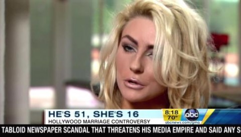 The King of Pop celebrated a posthumous birthday today . The Queen of Pathetic Publicity Stunts, meanwhile, also turned another year older. No, not Kim Kardashian . Courtney Stodden is now 17, an age where it’s appropriate to tell everyone about the lingerie your 51-year old husband reportedly bought for you. The aspiring singer said of the underwear to Radar Online: “I’m so happy. This is the best birthday ever. 17 is going to be even better than 16 because I’m going to spend the whole year with my wonderful husband!” And how did Stodden celebrate her final evening as a 16-year old? With the following Tweets, which we are seriously NOT making up: While I lie beneath this sizzling-sun, the popsicle that I am sweetly sucking on begins to melt & drips irresistibly all over my moist body! Celebrating the last night of being sweet-n-sexy 16 by wearing NOTHING but my tasty bday-suit! Mmm; Yummy! 😉 Seriously, Doug Hutchison , there’s something else you could have given your wife for her birthday: a shred of dignity.