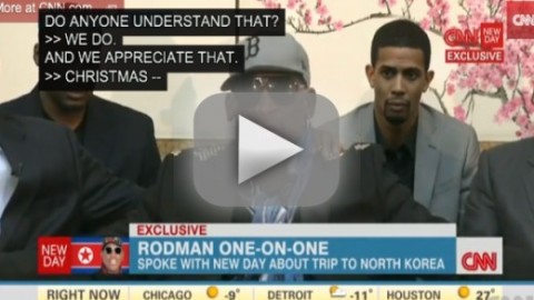 Dennis Rodman went positively ballistic today during an interview with CNN’s Chris Cuomo. While surrounded with several former NBA players, Rodman defended his trips to North Korea as a “great idea for the world.” But should the group, who is due to play in a basketball game tomorrow in honor of Kim Jong Un ‘s 31st birthday, really be in Pyongyang? Is this a good idea, considering North Korea’s human rights record? Cuomo also asked Rodman a serious question about Kenneth Bae, an American citizen who was arrested in November 2012, convicted last spring by North Korea of unexplained “hostile acts” and sentenced to 15 years in a labor camp… only for Rodman to FLIP OUT. He sounds like Hulk Hogan giving a wrestling promo in the following video. You must watch it now: Dennis Rodman GOES OFF in Defense of North Korea Trip Then again… really, CNN?!? Why are you giving this man any kind of political platform?