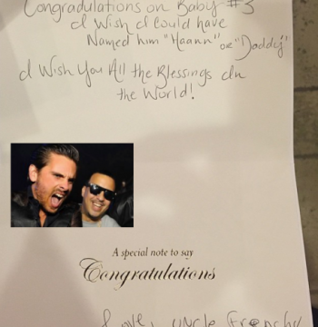 French Montana recently reached out to Scott Disick, writing the proud parent a congradulatory [sic] note after the birth of his third child with Kourtney Kardashian. What did he have to say? See for yourself below … A nice gesture, but it begs a couple of questions: Why would he want to name Kourtney’s new baby boy Haann or Daddy? Will the Ghost of French haunt the Kardashian family for years to come? Scott shared the card that French sent him, including the inside joke we don’t get (see #1 above) and signed “Uncle Frenchy” (cringe), on his Instagram page. Uncle Frenchy? For reals? Fans who read celebrity gossip sites on a regular basis and/or watch Kourtney and Khloe Take the Hamptons online know French was a factor for awhile. He dated Khloe Kardashian over the summer, then got back together with her again this fall, only to see the romance fall apart once more. It was a busy 2014. From the looks of it, however, she has no interest anything French come 2015. Khloe Kardashian is, after all, signing autographs Mrs. Odom now apparently. Regardless of whether Khlomar is happening again or not, she either needs to give French a more blatant boot out the back door, or he needs to get a clue. It was good while it lasted, Mr. Montana, and we’re glad you’re happy for Scott and Kourtney and all, but you’ll likely never be up there with Uncle ‘Ye. Time to move on and return to your moderately successful rap career, bruh. “Don’t Panic” … just see yourself out the nearest exit whenever you get a chance. K thx bai. Khloe Kardashian and French Montana Photos 1. Khloe Kardashian Gun Photo Really, Khloe Kardashian and French Montana?!? The couple poses here with a machine gun online.