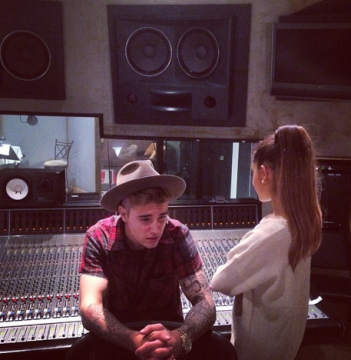 Justin Bieber Poses in Studio with Ariana Grande, Teases Duet