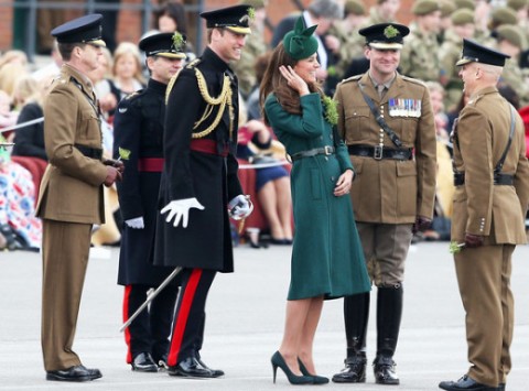 How much longer before Kate Middleton and Prince William welcome Royal Baby #2? That was the topic on everyone’s mind on St. Patrick’s Day … and any day in the UK. While attending the annual St. Patrick’s Day parade in Aldershot, England, Prince William revealed he and Middleton are currently planning on … Being content with just one royal baby in the family at the moment. That’s right. No plans to get Kate Middleton pregnant again. Yet. When asked by Regimental Sergeant Major Ray Collister if he’s planning on more kids, William admitted, “Maybe one day. One’s enough at the moment.” Understandable. Prince George is not even nine months old now. The duo says the future king is “very busy crawling and eating.” Earlier on Monday, the Duke and Duchess of Cambridge passed out 300 shamrocks to Irish guards at Aldershot for the annual St. Patrick’s Day Parade. Kate (who looked beautiful in a green coat, green hat and green shoes) and William chatted happily with soldiers and their families and also gave a toast. Last month, Will and Kate took George on his first vacation to their favorite Caribbean island of Mustique, then went on a separate vacation without him . Here’s a look at some of the youngster’s best photos so far: Prince George: A Young Life in Photos Open Slideshow 1. The Royal Family Kate Middleton, Prince William and Prince George in a wonderful portrait from the baby’s christening. View As List 1. The Royal Family Kate Middleton, Prince William and Prince George in a wonderful portrait from the baby’s christening. 2. Kate Middleton, Prince William and Prince George Kate Middleton, Prince William and Prince George celebrate the little baby’s christening. 3. Queen Elizabeth, Prince George, Prince William and Prince Charles Queen Elizabeth II with her three heirs, son Prince Charles, grandson Prince William, and great grandson Prince George. 4. Royal Family Portrait 2013 Prince William, Kate Middleton, Prince George and his uncle, grandfather and great grandparents on the day of his christening. 5. Kate Middleton and Prince George Kate Middleton and royal baby Prince George at the latter’s christening. What a cute mother-son combo. 6. George, Kate and William Kate Middleton, Prince William and royal baby Prince George at the latter’s christening. What a cute family! 7. Kate, William and George Kate Middleton, Prince William and Prince George at the latter’s christening in October 2013. Such a cute kid. 8. Prince George at His Christening Kate Middleton, Prince William and Prince George at the latter’s christening in October 2013. 9. Prince George Picture Prince George at his private christening in October 2013. Look at the future king all angelic. 10. Prince George Christening Photo Prince George at his christening on October 23, 2013. Look at the future king all angelic. 11. Royal Baby Portrait HRH The Prince of Cambridge, a.k.a. the Royal Baby, Prince George Alexander Louis, with proud parents Prince William and Kate Middleton. 12. Royal Baby Photo: Family Portrait The Royal Baby, Prince George Alexander Louis, with proud parents Prince William and Kate Middleton. 13. Kate Middleton and Princes Kate Middleton, Prince William and Prince George make for a cute little royal family. Don’t you think? 14. Cute Royal Family Kate Middleton, Prince William and baby Prince George make for an adorable royal family. 15. Kate Middleton Post-Baby Body Kate Middleton looks so adorable and beautiful in a polka dot dress, one day after giving birth. 16. George Alexander Louis Picture This is George Alexander Louis. Also known as the Royal Baby! 17. George Alexander Louis Photo George Alexander Louis, a.k.a. The Royal Baby. Long live the future King! 18. Kate Middleton and Royal Baby A gorgeous photo of Kate Middleton and her baby. Simply beautiful. 19. Royal Baby Pic The Royal Baby is here! He was born July 22, 2013. Here’s one of the first photos of him! 20. Royal Baby Photo The first photo of the Royal Baby! See! There he is, HRH the Prince of Cambridge!