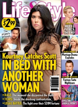 Allow us to answer the question posed in the above headline right up front: NO. Kourtney Kardashian did not catch Scott Disick in bed with another woman, no matter what the latest issue of Life & Style is trying to tell gullible readers this week. According to this unreliable supermarket tabloid, Scott has gone through with the “ultimate betrayal,” just weeks after his baby mama gave birth to the couple’s third child, Reign Aston Disick . The reality stars will now “fight over” a $31 million fortune, while many TEARS were shed over a “shocking confession” and RAGE has built up inside Kourtney after she “discovered the truth.” Rumors of a Disick-Kardashian split have been running rampant for months now, especially since the public learned that Disick is sleeping with Kendall Jenner . Wait? He’s not?!? Darn you, supermarket tabloids! It is true, however, that Scott Disick drinks. A LOT. He’s been known to destroy a hotel room or two in Colorado and his partying ways really have caused problems for Kourtney and the kids. Just watch Keeping Up with the Kardashians online to see what we mean and check out the following promo for new episodes of this E! smash hit: Keeping Up with the Kardashians Season 10 Promo Will Scott and Kourtney ever actually split? Maybe. Will she ever truly find her lover in bed with another woman? It wouldn’t shock us. It just hasn’t happened yet. 13 Photos of Kourtney Kardashian and Scott Disick That Make Us Wonder If They’re in Love 1. This Ain’t Good View Photo Scott says it all with his reaction to Kourtney’s third pregnancy. 2. Scott Disick and Kourtney Kardashian Picture View Photo Scott Disick and Kourtney Kardashian look totally thrilled to be together in this photo, don’t they? Is the couple ever happy? 3. Scott and Kourtney Pic View Photo Scott Disick and Kourtney Kardashian navigate their way around Los Angeles in this photograph. 4. Kourtney Disses Scott! View Photo Scott Disick tried to propose, according to this tabloid cover. But he was dissed by Kourtney Kardashian! Advertisement A message from our sponsor. 5. Scott Disick and Kourtney Kardashian on Halloween View Photo Scott Disick dresses here as Robin and Kourtney Kardashian also gets into the Halloween spirit. Like their outfits? 6. Kourtney Kardashian and Scott Disick Pic View Photo We can’t make fun of Kourtney Kardashian and Scott Disick for this fact: they are parents of a baby girl! She was born on 7/8/12. 7. Kourtney Kardashian, Scott Disick and Mason View Photo Kourtney Kardashian, Scott Disick and Mason go for a walk. How cute! 8. Kourtney, Scott, Mason View Photo We admit it: Kourtney Kardashian and Scott Disick made a cute kid together. But the actual couple still makes us sick. Advertisement A message from our sponsor. 9. Kourt and Scott Picture View Photo Kourtney Kardashian and Scott Disick have been relatively quiet for awhile now. No drama equals good news! 10. Fighting Over Mason! View Photo Oh, no! Kourtney Kardashian and Scott Disick are fighting over their child. Poor, poor Mason. 11. The Disicks View Photo Kourtney Kardashian and Scott Disick have created a very cute son named Mason. But the family would be a lot cuter if cameras didn’t follow them around everywhere. 12. Douche in NYC View Photo Ready for Scott Disick, reality show viewers? He and Kourtney Kardashian are moving there for their E! spin-off series in 2011. Advertisement A message from our sponsor. 13. What, Us Worry? View Photo Life is good for Kourtney Kardashian and Scott Disick in this picture. That’s because someone else is looking after their kid. The End. Did you like 13 Photos of Kourtney Kardashian and Scott Disick That Make Us Wonder If They’re in Love? If so, please share: Share on Facebook Tweet on Twitter Email a Friend Pin on Pinterest Want more? Get more content like this delivered to your inbox for FREE: