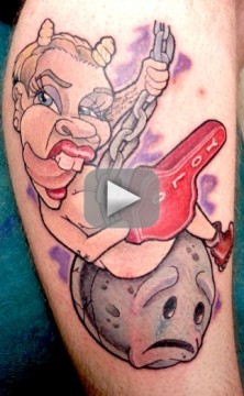 Move over, Vanilla Ice. Someone has taken your Miley Cyrus tattoo joke to a whole new level. Buffalo tattoo artist Scott Howard posted a photo to Facebook this week of an etching he made for “some poor kid.” It features a likeness of Miley, tongue and breasts out, foam finger in hand, wrecking ball squarely under her bare bottom. You’ve gotta see this. Click Play to do so and keep in mind: this thing is 100% real. Crazy Miley Cyrus Tattoo “There isn’t really much story,” Howard added on Instagram. “I draw all these stupid things and people actually want to get them done. Never stops surprising me.” Miley actually said the same thing in a recent interview. She has Rolling $tone tattooed on her feet, after all, and told that publication that “people do f–ked-up shit” when it comes to body ink. As one unnamed young man can now attest to. We think we know of at least one person now who will be purchasing ” Bangerz ” when it goes on sale next week. What do you think of this Miley Cyrus tattoo? So cool and original! Oh, dear God… View Poll »