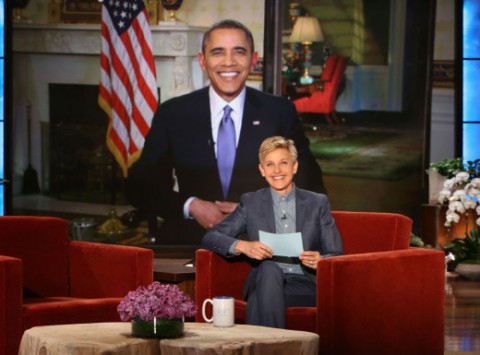 President Barack Obama made his first appearance on Ellen this week. And the Commander-in-Chief wasted little time in chiding the host over her Oscars selfie , which broke the record for most re-Tweets this month… a record previously held by Barack Obama! “I thought it was a pretty cheap stunt,” the President joked of the famous photo. “Getting a bunch of celebrities in the background…you feeding them pizza.” On November 6, 2012, within an hour of being re-elected, Obama posted a photo of himself with his wife and wrote, “Four more years.” It held the Twitter record until Ellen, Bradley Cooper and company shattered it on March 2. Elsewhere, Obama said he enjoys House of Cards, but has never seen Scandal . He’s aware of the ABC hit, however, and does offer some perspective on it. “I have to tell ya, life in Washington is a little more boring than displayed on the screen,” he said. “The truth of the matter is, if you followed me, most of my day is sitting in a room listening to a bunch of folks in gray suits talking about a whole bunch of stuff that wouldn’t make very good television.” The President also quipped that the Situation Room could use more dancing and said he plans to get a tattoo in order to “reduce the cool factor” of such ink and discourage his daughters from marking up their bodies. Pretty funny stuff all around. Watch various segments from the appearance here: President Barack Obama on Ellen Open Slideshow 1. President Obama on Ellen, Part 1 How is President Obama doing while his wife away? Ellen finds out in this clip from her talk show. View As List 1. President Obama on Ellen, Part 1 How is President Obama doing while his wife away? Ellen finds out in this clip from her talk show. 2. President Obama on Ellen, Part 2 President Obama stops by Ellen and discusses his favorite TV shows in this clip. What are they? Find out now! 3. President Obama on Ellen, Part 3 President Obama has a bone to pick with Ellen DeGeneres: she broke his Twitter record at the Oscars!
