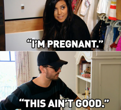 Judging from the nude Kourtney Kardashian photos we saw yesterday, pregnancy seems to agree with the eldest K-sis. Scott Disick, on the other hand, has had a rough nine months. Kourt’s controversial longtime beau was hospitalized for alcohol poisoning and he’s recently earned the nickname “Douche Lord” on countless occasions. In fairness, Scott lost both of his parents in the same month, and seemed to have some serious misgivings about the idea of raising a third child: 13 Photos of Kourtney Kardashian and Scott Disick That Make Us Wonder If They’re in Love 1. This Ain’t Good Scott says it all with his reaction to Kourtney’s third pregnancy. Remarkably, however, sources are now saying Scott has turned things around and miraculously transformed into the ideal baby daddy: “For the first time in a long time, Kourtney says she has nothing to complain about when it comes to Scott,” one insider tells Radar Online. “He is taking care of her and she says she is content right now. She even referred to him as her sweetheart.” That may not sound like a big deal, but bear in mind that until recently Scott and Kourtney hadn’t slept together in five years ! So congrats to Scott for turning things around, and props to Kourtney for having enough patience to help him through his rough patch. But hopefully Khloe doesn’t get any ideas and decide to give Lamar another chance. Watch Kourtney and Khloe Take the Hamptons online to relive Scott’s battle with the bottle. 11 Times Scott Disick Was a Douche 1. When He Ragged on Kim’s Marriage Lord Disick often says what we’re thinking. Especially when he’s ragging on his baby mama’s clueless sisters.
