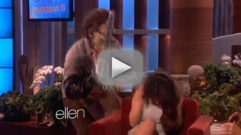 Got ya, Selena Gomez! This singer/actress, who will soon return to Wizards of Waverly Place , appeared on Ellen this week and thought she had avoided the host’s patented scare tactics. But then Selena was talking about Justin Bieber and trips she takes with her boyfriend and the crowd could see someone with a chainsaw sneaking up behind Gomez and… well… … watch for yourself: Selena Gomez: Scared on Ellen!