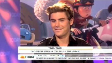 Zac Efron lends his voice to the big screen version of Dr. Seuss’ The Lorax , which hits theaters this week and for which the actor appeared this morning on The Today Show in order to promote. During the interview, though, the actor was forced to address an incident with Matt Lauer that was decidedly NOT in the movie’s script: his dropping of a condom on the red carpet of the Hollywood premiere. “I never really had a pocket-checking policy prior to going on the red carpet before, but now we fully instated one,” Efron joked, adding of the safe sex he clearly practices: “It’s a great message, to add to the many messages in the film.” Watch the awkward exchange between host and star now: Zac Efron Today Show Interview