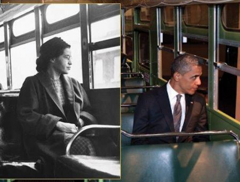 Ahhh-haaa hush that fuss, even Barry-O spent time in the back of the bus… President Obama To Speak At Rosa Parks Statue Unveiling Via Yahoo! President Barack Obama will join Democratic and Republican congressional leaders next week for the ceremony to unveil a statue of civil rights icon Rosa Parks at the U.S. Capitol—the first statue of an African-American woman in the halls of Congress. In 1955, Parks, a Montgomery, Ala., seamstress, refused to give up her seat on a public bus to a white man. She was convicted of violating the state’s segregation laws, and her legal battle ultimately reached the U.S. Supreme Court, which ruled the bus segregation law unconstitutional. In April 2012, Obama visited the Henry Ford Museum after a campaign rally in Dearborn, Mich. Official White House photographer Pete Souza snapped a picture of the president sitting on the Rosa Parks bus. Republican House Speaker John Boehner and Democratic Senate Majority Leader Harry Reid invited Obama to attend the unveiling. “We will come together to celebrate the life and legacy of Mrs. Parks, whose statue will be the first of an African-American woman in the Capitol,” the lawmakers wrote in a letter to Obama. “This is a national statue and this ceremony will be a national moment, an occasion to recount a watershed event in our history and reaffirm our capacity to confront injustice and lift each other up.” True dat. You know Barry is gonna SLAY his speech, the whole place will probably be in tears. Image via tumblr