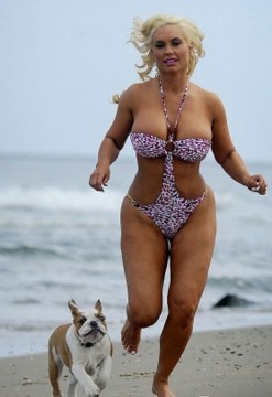 If I wanted to see a fat chick running on the beach like she’s not fat, I’d take my fucking wife on vacation…. But here is Coco…all of Coco…all 160 lbs of Coco with a bull dog….who has more sex appeal that her and he doesn’t even have to flaunt it and scream for it and put it on fucking billboards….and I am not even into fucking dogs sexually, but if a gun was to my head and I had to pic one of them, it would be a test to my love for dogs…cuz Coco is the worst…. To See THe Pics FOLLOW THIS LINK