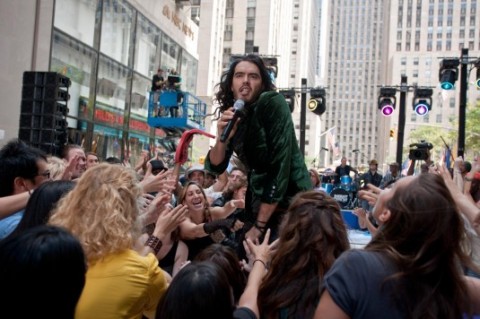 The golden age of comedy — this new golden age, which will only be apparent years from now, when it’s over — continues with the release of “ Get Him to the Greek ,” which is so comically fertile and yet so grounded in the reality of its characters that it’s really a kind of Marvel. There is a quick and simple litmus test to tell whether or not you’ll enjoy Get Him to the Greek. If you found Aldous Snow , Russell Brand ’s caricature of a rock star, to be one of the funnier elements of Forgetting Sarah Marshall, then you will no doubt have a riot with the increased raunchiness his character once again brings to the screen for director Nicholas Stoller . If, for whatever reason, you find Brand’s larger-than-life presence to be as insufferable as the real rock stars he’s lampooning, chances are good his spin-off film will do little to convince you there’s more to him than just an outrageous persona. Get Him to the Greek is exactly what the trailers advertise: Aldous Snow turned to 11…read more [ Cinematical ] Russell Brand and (Aldous Snow) in Get Him To The Greek Judd Apatow — the current king of movie comedy — took a risk last summer with the bloated and terribly self-involved “Funny People.” The Adam Sandler film took a nose dive at the box office — a fate it deserved. But this summer, the creator of such crowd-pleasers as “The 40-Year-Old Virgin” and “Knocked Up” rebounds mightily with “Get Him to the Greek,” one of the funniest, raunchiest and edgiest comedies in years. The outrageous “Greek” works better than “Funny People” at least in part because Apatow, who tends to make films that meander too much, hands over writing and directing duties to a protege — “Forgetting Sarah Marshall’s” Nicholas Stoller. Instead, Apatow produces “Greek,” just as he did with the terrific teen comedy “Superbad.”…read more [ MercuryNews ] Married-rich radical M.I.A. might be having press problems these days, but they’re nothing compared with the pretensions of fictional rocker Aldous Snow (squirmy, effortlessly charming Brand). Get Him to the Greek opens with a devastatingly funny parody—a video for Snow’s self-serious “African Child,” described by shocked music critics as the worst thing to happen to the continent since apartheid. Seven years of infamy lead the debauched frontman to agree to a comeback concert, the brainstorm of superfan label-rep Aaron (Hill). After sparring with his workaholic girlfriend (Mad Men’s Moss, an unlikely partner), Aaron is on his way to London to shepherd Snow to the L.A. concert, scheduled to occur in three days…read more [ TimeOut NewYork ] Russell Brand stars as Aldous Snow and Jonah Hill stars as Aaron Greenberg in Get Him to the Greek The movie is funny in the way of “The Hangover” about what trouble lads can get into when their senses are whirling. Unlike some depictions of binges, it doesn’t shortchange vomit. The adventures of Aldous and Aaron remind me of a friend I used to meet on Saturday mornings for what we called Drunch. “Sometimes,” she said, “it can be really exhausting having a good time.” Aaron, who has been threatened with flaying if he doesn’t deliver Aldous on time, panics when he can’t get him to Heathrow for the right flight, can’t get him to “Today” on time, can’t get him to the sound check at the Greek, and very nearly can’t get him to the Greek. Aldous for the most part floats benevolently above these small misunderstandings. When it comes to himself, he’s a very understanding man…read more [ Roger Ebert ] The beauty of the film is that, having put in place a solid comic structure, Stoller keeps coming up with surefire comic situations. And so when young, straight-arrow Aaron (Jonah Hill) finds himself in a limousine heading for the “Today” show with a rock star who absolutely must not arrive drunk or stoned, what does he do when the rock star whips out drugs and alcohol? Aaron hogs the drugs and drinks all the alcohol and arrives on the set with vomit all over his own jacket. And on and on, for 109 minutes, just one absurd, uncomfortable, hysterical situation after another…read more [ SFGate ] Colm Meane stars as Jonathan Snow and Russell Brand stars as Aldous Snow in Get Him to the Greek Get Him to the Greek is a transcontinental substance-filled race against time. When the closing credits rolled, I was absolutely exhausted. This was not due to a cinematic marvel of transference, it was because I’d been laughing, heavily, for one hundred and nine straight minutes.Wisely giving “Aldous Snow,” the best thing about his so-so Forgetting Sarah Marshall the spotlight, Nicholas Stoller’s Get Him to the Greek delivers what’s advertised – Russell Brand being a madman and Jonah Hill being an oaf – and sets them running on a plot-light ride through ridiculous, environment-driven set pieces. While at heart a simple road picture taken straight from the Hope and Crosby playbook, Greek bends over backward to stuff as much dazzle in each scene…read more [ UGO ] The picture is much better when it sticks to being a satire of the music industry. That’s when comedian Brand is at his most inspired. His band may be called Infant Sorrow (a bookish nod to William Blake), but the decadent Aldous Snow is a wicked parody of geezer rock. Looking like the bastard child of Keith Moon and Jimmy Page, he prances about the stage with the prissiness of Mick Jagger, flashing wild-man eyes that could outstare Iggy Pop. His Today Show number, The Clap, even sounds like a send-up of the Stones at their dirtiest. (Rock vet Lyle Workman provided the film’s witty music.) Brand also brings to the character his own double-edged comedic persona – part crude, part genteel, with an irresistible blend of devilry and disarming innocence…read more [ CBS News ] Russell Brand stars as Aldous Snow and Rose Byrne stars as Jackie Q in Get Him to the Greek