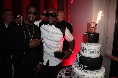 Diddy was on hand to celebrate producer Rico Love’s birthday this weekend. He wasn’t the only one either. Kelly Rowland, BDR, Fat Joe and Pharrell were also seen on the scene. Here’s some info about the party: Roberto Cavalli and Saks Fifth Avenue, Bal Harbour pulled out all the stops Saturday night at SLS Hotel South Beach in honor of Rico Love’s 30th birthday celebration during Art Basel Miami Beach. The evening’s cocktail menu included a choice of GREY GOOSE® Cherry Noir Trey Noir, GREY GOOSE® Cherry Noir Triple Platinum and GREY GOOSE® Le Fizz. Attendees included Eva Cavalli, Kelly Rowland, Fat Joe, Pharrell, Russell Simmons, Andre Harrell, Janice Combs, Angie Beyince, DJ Cassidy and Adriana de Moura, among others. Rico stepped on to the red carpet as photographers yelled “Happy Birthday Rico,” and Eva Cavalli soon joined him for a couple’s photo session by the paparazzi. Two hours in to the event, guests were asked to take their seats at the side of the pool to witness an exclusive Cavalli fashion show, orchestrated backstage by Eva Cavalli herself. The Roberto Cavalli Spring/Summer 2013 collection featured was inspired by the poetic decorations of the Art Nouveau period. Cavalli did not show the collection at New York Fashion Week this year, making this special presentation for Rico’s birthday the only showing in the U.S. This year, Rico and Saks Fifth Avenue, Bal Harbour announced they are giving back to the community by donating 10% of the proceeds of sales from the Cavalli fashion show and pop-up store, as well as in-store sales, to Usher’s New Look Foundation. DJ Affect was hired to provide the beats throughout the cocktail reception and fashion show. As the fashion show came to a close, invited dinner guests quickly made their way inside Katsuya, the hotel’s Asian-inspired restaurant, for the private dinner portion of the evening. Approximately 100 invited guests were seated for the private dinner, with Rico’s table of 10 facing the entire room around him. As the Edamame was served family-style on to each table, guests were treated to a first course of Crispy Rice with Spicy Tuna, Creamy Rock Shrimp Tempura and the chef’s selection of assorted classic rolls, including Baked Crab Cut Rolls and Vegetable Roll. The second course comprised of Chicken Teriyaki, Robata Grilled Kobe Skirt Steak, Miso-Marinated Black Cod, Stir Fry Vegetables and Steamed White Rice. As the first course began, Rico’s five-layer birthday cake was wheeled in to the side of the room, encased with notes and bars of music etched in to each tier with Rico’s name on the very top in red, and a HUBLOT logo written in white icing on the middle layer. The base of the cake illustrates the keys on a piano, with ‘Happy 30th Birthday’ written beneath it. A Hublot watchcase with watch inside was designed in cake to resemble a replica of his own. As the second course was presented, Sean “P Diddy” Combs, made a grand entrance with an entourage of Rico’s friends. “I knew Rico while he was growing up in Harlem,” Combs said. “ I was blown away by his music then, and I still continue to listen to it now. Please raise your glasses to our friend, Rico Love.” Owner of Hublot Americas, Rick Delacroix, then made a birthday gift speech to Rico, and presented him with a limited edition Hublot Miami watch, named the “Hublot 305,” of which only 10 were made. Rico took the watch from its box and wrapped it around his other wrist and showed it next to his existing Hublot timepiece. “I am lucky, honored and privileged to have such a warm and heartfelt group of family and friends around me on such a special day,” said Love. “I’d like to thank Eva and Roberto Cavalli, and our sponsors, Saks Fifth Avenue, Bal Harbour, Hublot and GREY GOOSE, for making this momentous birthday occasion the most memorable ever.” The impressive dessert line-up included Chocolate Lover’s Cake, Passion Fruit Caramel Donuts and Mochi Ice Cream. Rico Love is one of the foremost music producers in the hip hop and urban music industry, having written hits for Usher, Beyonce, Kelly Rowland, Trey Songz, Fergie, Romeo Santos and Diddy, among others. Photo Credit: Johnny Nunez