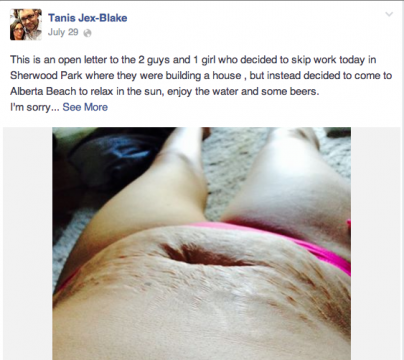 The bullying has got to stop… Alberta Mother Of 5 Writes Open Letter To Bullies Who Mocked Her Stretch Marks On Beach A mother of five from Alberta, Canada has been embraced by people across the globe after turning to Facebook to vent about her horrifying experience at the beach. Check out her open letter below: “This is an open letter to the 2 guys and 1 girl who decided to skip work today in Sherwood Park where they were building a house, but instead decided to come to Alberta Beach to relax in the sun, enjoy the water and some beers. I’m sorry if my first attempt at sun tanning in a bikini in public in 13 years “grossed you out”. I’m sorry that my stomach isn’t flat and tight. I’m sorry that my belly is covered in stretch marks. I’m NOT sorry that my body has housed, grown, protected, birthed and nurtured FIVE fabulous, healthy, intelligent and wonderful human beings. I’m sorry if my 33 year old, 125 lb body offended you so much that you felt that pointing, laughing, and pretending to kick me. But I’ll have you know that as I looked at your ‘perfect’ young bodies, I could only think to myself “what great and amazing feat has YOUR body done?”. I’ll also have you know that I held my head high, unflinching as you mocked me, pretending that what you said and did had no effect on me; but I cried in the car on the drive home. Thanks for ruining my day. It’s people like you who make this world an ugly hateful place. I can’t help but feel sorry for the women who will one day bear your children and become “gross” in your eyes as their bodies change during the miraculous process of pregnancy. I can only hope that one day you’ll realize that my battle scars are something to be proud of, not ashamed of.” Well said, right?! We’re glad that she was able to turn her negative into a positive. Her letter has been shared all across the world OVER 3,400 times!!! Facebook