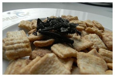 This is not magically delicious… Man Finds Bat In Cereal Via Metro UK : The hungry German man’s start to the day was completely ruined when he discovered the dead bat in his bowl of cereal at his home in Stuttgart. He was left feeling more horrified than hungry when he realised the mummified mammal was not a Halloween themed toy. The incident was reported to health officials who are attempting to establish how the errant bat managed to fly into the box of corn flakes. They believe the bat may have flown into the plastic packaging by mistake and suffocated to death. Scientists are investigating whether the bat had flown into the box of Mini-Zimties cereal at the factory or after they had been opened. Food safety official Jorg Sturmer said: ‘I have never seen anything like it. This really is an unusual case.’ We would have gone bat isht! CEN