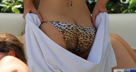 The reason these pictures of trash can urinal Kim Kardashian make me laugh is not so much because she’s hanging with people more famous than her in Miami in hopes of feeling more relevant, not to say that Christina Aguilera is relevant, but I guess girl can sing and she has made lots of money and left her mark on the world with more than just a sex tape and a TV show no one will remember…. The reason these pictures of trash can urinal Kim Kardashian make me laugh is not so much because she’s in a bikini to make sure more pictures taken of her….that’s just obvious bottom feeding ladder climbing shit… The reason these pictures of trash can urinal Kim Kardashian make me laugh is because she’s covering her fucking ass like a teenage girl who is insecure about her body cuz she’s a teenage girl at the water park, or the fat mother at the public pool in a t-shirt cuz she’s a fat fucking mother who knows she looks like shit in a bathing suit but is doing it cuz she doesn’t want to miss out of life too…. I’m guessing Kim knows her ass is all anyone cares about….but more importantly that it’s a sloppy fucking disaster of an ass that without it’s Spanx and harnesses leave her with a crime scene that isn’t good for business…..while covering it up leaves the mystery that maybe that magical shit is being hidden cuz of it’s perfection, a stigma she’s trying to let die and not feed into…yeah…I’m sure that’s the case…because her life hasn’t been one cry for attention after another….and if she had a great ass, I’m pretty sure she’d be in ass-less chaps daily…and what you see here is just staged marketing…. And the good news is that at least she’s got tits…. Bonus – Strategic Ass Peek flash – where there was just enough ass to satisfy our needs while not showing off the actual disgusting part. Pics via Bauer Pics via Fame