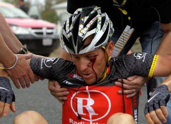 Seven-time Tour de France champion Lance Armstrong, seen here on May 16, abandoned the Tour of California after crashing early in the fifth stage on Thursday. “Sorry to report there was a huge crash,” RadioShack team manager Johan Bruyneel said via Twitter. “Lance had to abandon and is going to the hospital for x-rays.” Team spokesman Philippe Maertens said Armstrong was evaluated by doctors in the team bus who gave him eight stitches under his left eye, and also had “a severe left elbow contu