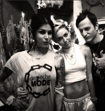 Miley Cyrus got a new Tattoo because she’s so fucking urban, you know now that she’s gone hip hop, because hip hop is pop music, and she’s a fucking pop star from LA and all she knows is pop…you know even when being underground she’s fucking mainstream cuz she’s Miley Cyrus…and the whole thing would be better if she was choreographing a hipster themed, but not very hipster cuz she’s Miley, and being hipster is impossible, twerk…. Here’s some MTV VMA preview shit…that would be much better if she was shaking that ass…it’s pretty fucking lame… To See The Rest of the Pics of Her with Kat Von D, my favorite fat nobody Nazi who doesn’t deserve to be famous… CLICK HERE