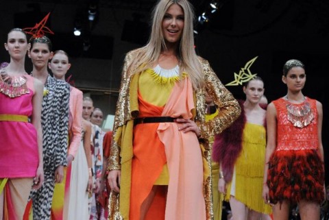 Miss Universe 2004 Jennifer Hawkins (C) and models showcase designs by Manning Cartell on the catwalk at the Myer Spring/Summer 2011 fashion launch at the Carriage Works on August 11, 2011 in Sydney, Australia. There may have been a chill in the air outside but inside Sydney#39;s Carriageworks it was all about vintage maxi dresses, bikinis and floppy hats. The Myer Spring Summer 2011/12 Collection launch on Thursday night also featured plenty of vibrant colours, navy stripes, platform heel