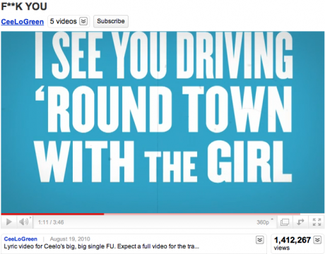 A new song by hip-hop star Cee Lo Green is making its way around the Internet, largely based on the shock value of the song’s title, “F**K YOU,” and its generous use of the obscenity in the lyrics. The song, which clocks in at 3:46, offers 16 instances of the “f-word” – that’s once every 14 seconds. The singer directs the curses toward his former girlfriend and her new beau. “I see you drivin’ ’round town with the girl I love, and I’m like, ‘f**k you,” Cee Lo sings at the start of the upbeat, catchy tune. The song also features 10 uses of s**t, two of a**, and two partial uses of the n-word. A video posted on YouTube Aug. 19 from the CeeLoGreen account displays the lyrics in rhythm with the tune. It gathered steam over the weekend, propelling it to over 1.4 million views as of the afternoon of Aug. 23. The video’s information promises a full version “next week.” Sometime on Monday, Aug. 23, YouTube began requiring visitors to sign in to view the video, noting it “may contain content that is inappropriate for some users.” But the embedded version is available for unrestricted viewing on numerous websites, including Cee Lo’s personal website and his MySpace page . Clicking on his Myspace page automatically activated the song. Cee Lo, a.k.a. Thomas DeCarlo Callaway, is a member of the popular duo Gnarls Barkley, known for the similarly catchy (but much cleaner) 2006 hit “Crazy.” The online release of “F**K YOU” is a promotion for his upcoming solo album “The Ladykiller.” This isn’t the first time pop singers have tried to use provocative lyrics to get attention. That’s been the story of popular music from the Rolling Stones’ “Some Girls” to Britney Spears’ “If U Seek Amy.” Like this article? Sign up for “Culture Links,” CMI’s weekly e-mail newsletter, by clicking here.