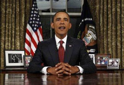 U.S. President Barack Obama speaks after addressing the nation about the end of the U.S. combat mission in Iraq from the Oval Office of the White House in Washington, August 31, 2010. The address, scheduled for 8 p.m. EDT, will be only his second from the Oval Office. Obama also used the high-profile venue in June to discuss his administration#39;s response to the Gulf Coast oil spill. Hulu:http://www.hulu.com/watch/174967/abc-news-specials-obamas-speech-end-of-operation-iraqi-freedom Presi