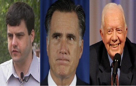 Surprise! You’re on candid camera d-bag! Jimmy Carter’s Grandson To Come Forward As The Man Who Leaked The Mitt Romney 47% Rant Via HuffingtonPost Bill Clinton won the presidential election for Barack Obama. But it wasn’t his masterful Democratic National Convention speech or the advice he offered the president’s reelection campaign. Clinton, it turns out, inspired the man who filmed Mitt Romney’s infamous and game-changing 47 percent comments. HuffPost has agreed to withhold the name of the surreptitious filmmaker until he breaks his silence on MSNBC’s “The Ed Show” Wednesday evening, followed by an appearance on HuffPost Live Thursday morning. In interviews over the last several months, he laid out his thinking before and after Romney’s speech. The man, who tended bar for a company that catered to a high-end clientele, had previously worked at a fundraiser at a home where Clinton spoke. After Clinton addressed guests, the man recalled, the former president came back to the kitchen and thanked the staff, the waiters, the bartenders, the busboys, and everyone else involved in putting the event together. He shook hands, took photos, signed autographs, and praised the meal — all characteristic of the former president. When the bartender learned he would be working at Romney’s fundraiser, his first thought was to bring his camera, in case he had a chance to get a photo with the presidential candidate. Romney, of course, did not speak to any of the staff, bussers or waiters. He was late to the event, and rushed out. He told his dinner guests that the event was off the record, but never bothered to repeat the admonition to the people working there. One of them had brought along a Canon camera. He set it on the bar and hit the record button. Jimmy Carter’s grandson, James, took the brunt of the public publicity for making sure that the tape was serviced to all the national media outlets. Might have to give James Carter and his soon-to-be-named friend a hood pass. Barry-O ‘preciates y’all playa! Image via AP
