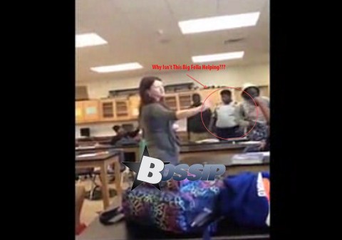Raw Video: Jalopy Security Guard Watches As White Teacher In All Black School Is Handled Trying To Stop An Angry Bird Fight [Video]