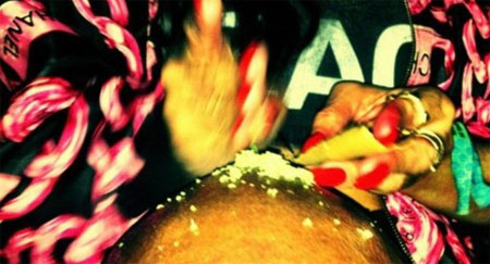 I knew Rihanna was an attention whore….or just a whore…back when she first landed her record deal…only because I know people in Barbados who had been telling me bitch was a child hooker who got the right John…pretty much since the beginning…. As her career, or public image, progressed for that easy to digest pop crap, to what’s become a sex charged, keeping in line with her history as a child hooker, I knew for the next 5 years, we’d be dealing with a slut… Then she got beat by Chris Brown, something I am still not convinced was actually Chris Brown’s doing because my same informant in Barbados said that Bajan chicks are insane enough to beat themselves up and call the cops on you, his wife would sniff his dick whenever he got home to see if he was cheating….daily….and police were called often….and shit happened to his neighbors too…just a way of life there… Now she’s gone a little extra slutty, she’s smoking drugs in public, she’s pulling the “i don’t give a fuck” card…and now she’s posting pics of what could be weed instagramed to fuck the color….or some white popcorn like powder….and even though I don’t have a girls and weed fetish…I do have a girl rubbing pussy on the back of my neck fetish…so this works for me….I’m obscure like that…Who cares.