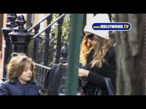 Trudging through the chilly, grey streets of New York, Sarah Jessica Parker walks the kid.