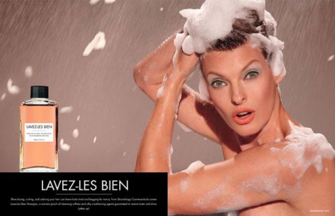 The New York Times advertises itself as “all the news that’s fit to print,” and they found NUDES fit to print last Friday as they re-printed a spoof ad featuring Linda Evangelista lathering up in the shower. Titled Lavez les-bien (translation: “wash them well”), the fake ad (above) touts the benefits of a non-existent body wash, but we’re more interested in what appears to be a a nip slip (underneath her left arm) from the skingy supermodel. The paper included the ad in an article on the Fashion & Style section of their website, and if the NYT ‘s eagle-eyed editorial staff noticed the nip before publication, they let it pass without comment. What’s black and white and red all over? Mr. Skin’s palms when there’s nudes in the newspaper, of course! Members can access our database of nude supermodels like Rebecca Romijn and Heidi Klum right here at MrSkin.com!