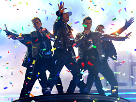 The boy bands bring their old favorites to the American Music Awards. By Jocelyn Vena New Kids On The Block perform with the Backstreet Boys at the 2010 American Music Awards on Sunday Photo: Kevin Winter/ AMA2010/ Getty Images They might have been the only nine guys who could close out a show as hectic as the American Music Awards. In a show filled with pop newcomers like Taylor Swift and Justin Bieber , New Kids on the Block and Backstreet Boys graced the stage to show they still had the right stuff. Like any good boy-band performance, there were pyrotechnics and sweet dance moves. The pop supergroup started with a mash-up of the BSB hit “Everybody (Backstreet’s Back)” and the NKOTB classic “Hangin’ Tough.” Soon the guys slowed it down for Backstreet’s “I Want It That Way” and then kicked it old school for the New Kids’ “Step by Step.” All nine guys took a dance break before they segued into “The Right Stuff,” complete with the New Kids’ infamous shuffle dance from the video. The spotlight once again fell on a BSB tune before they capped it off with “Larger Than Life,” complete with an “NKOTBSB” chant. Confetti fell from the sky as the guys closed out the show. Earlier in the night, all nine guys hit the AMA red carpet together. In an interview earlier this month, they teased that there was a chance they might record a track together. “It’s tough getting these guys in the studio. These young cats,” New Kid Joey McIntyre explained about his tourmates, the Backstreet Boys . “Well, it’s honestly, it is tough to get everybody together. Yes, we have lots of great intentions. What did you think of the New Kids/ Backstreet performance? Share your reviews in the comments! Related Videos AMA 2010 Performance Highlights Related Photos Performances At The 2010 American Music Awards 2010 American Music Awards Red Carpet Related Artists Backstreet Boys New Kids on the Block