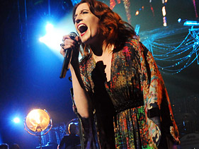 Audience members sat on one another’s shoulders festival-style despite the ‘snazzy venue.’ By Nadeska Alexis Florence Welch Photo: Jeff Kravitz/ Getty Images NEW YORK — Despite a lack of sleep, which she credited to having a very eventful stay in New York, Florence Welch still tapped into festival-level energy for her sold-out show at Radio City Music Hall on Tuesday night. In the time that’s elapsed since the release of her 2009 debut Lungs, the 25-year-old English musician, stylized with her band as Florence and the Machine , has blossomed into an international star and a world-class performer. That much was reflected in her ability to command the audience’s attention, keeping them on their feet throughout an hour-long show in a venue that afforded the option of seating. The show was live-streamed on Fuse TV, and maybe because of this, Welch performed a set that was heavy on material from her most recent LP Ceremonials, breaking only to backtrack with Lungs singles “Dog Days Are Over,” “Cosmic Love” and “Rabbit Heart.” Opening up with the new album’s intro track “Only If for a Night,” Florence got her vocals warmed up, easily hitting the rapturous notes on “What the Water Gave Me” and “All This and Heaven Too,” with her energy level steadily rising with each song. With the vibe finally established and the crowd engaged, Florence took a few extra moments to get her audience prepared for “Rabbit Heart (Raise It Up),” by encouraging men in the crowd to hoist dates on their shoulders, summer festival-style, despite Radio City being “quite a snazzy venue.” It didn’t take much prompting. Immediately, girls in the crowd began to pop up on shoulders, and Welch gleefully tallied the number of fans who were happy to oblige, before launching into the song. “Rabbit Heart (Raise It Up)” was one of the highlights of the set, complete with an extended break allowing the audience to clap along to the percussion, while Welch skipped from one end of the stage to the next. Her sheer, billowing jumpsuit, which gave her the appearance of a fairy as she sauntered across the stage, was also mesmerizing when she stood still, arms spread, letting her vocals fill up the empty space in the auditorium on songs like “Spectrum.” Her disarming interactions with the crowd made it easy to swoon over her, and performing “Heartlines” after admitting that New York feels “more and more like home” didn’t hurt either. “Dog Days Are Over,” one of her biggest singles to date, was an obvious smash with the audience, and the encore found her delivering two final cuts from Ceremonials. “Never Let Me Go,” came with a dedication to a fan’s mother who had just passed away and “No Light, No Light” was her final number before disappearing for the night. Related Videos Unplugged: Florence + The Machine Related Artists Florence + the Machine