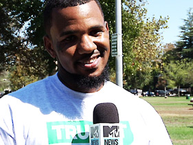 ‘We’re working on the family aspect, working on getting stronger as friends,’ rapper tells MTV News of longtime girlfriend Tiffney Cambridge. By Kara Warner, with reporting by Felicia Morris Game on the set of his “Celebration” music video Photo: MTV News