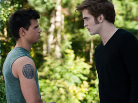As ‘Eclipse’ opens nationwide, Gaga fans guess whether the pop star prefers vampires or werewolves. By James Montgomery Taylor Lautner and Robert Pattinson in “Eclipse” Photo: Summit June 30, 2010: A date that every single Twi-hard has had circled on their calendars since February 2009, when Summit Entertainment announced that it would be the day they’d release “The Twilight Saga: Eclipse,” the third film in the ultra-profitable series. June 28, 2010: A date that every single little monster has had tattooed on their foreheads since this March, when Lady Gaga announced that it would be the day she’d be in Montreal to kick off the North American leg of her Monster Ball Tour , the latest run of her ultra-profitable jaunt. Naturally, MTV News has been all over both of those dates, but never have we combined the phenomena … until now. When we were up in Montreal, we asked some of Gaga’s little monsters a couple of “Twilight”-themed questions. First, do they think Gaga should contribute a song to the soundtrack of the next film in the series (that would, of course, be part one of “Breaking Dawn”)? And, perhaps most pressing of all, is Lady Gaga on Team Edward or Team Jacob? And while many we spoke to seemed to think Gaga should record a song for “Breaking Dawn” pronto (and it should be “scary,” “sexy” and/or “bloody”), the issue of Edward v. Jacob proved to be slightly more divisive. “She’s definitely Team Jacob, because he’s got a hot body [and] because he’s hairy,” Gaga fan Chiara Williamson said. “And she should totally do a song for the ‘Twilight’ [films]. … I think it would be about boys. Vampire boys.” “She’s Team Edward. … She’s all about the vampires,” Shareejah Daley countered. “Her latest video [‘Alejandro’] is more dark and vampire-y … but, even if she was [Team Jacob], I’d still love her.” It was pretty heated. But as showtime drew closer, more and more little monsters came out in support of Team Jacob — so many that it wasn’t even close by the time doors opened. And why would Gaga side with Jacob? For very compelling reasons, obviously. “She’s Team Jacob, because werewolves are so much sexier,” Evelyn Barake laughed. “[And] they’re bigger monsters than vampires.” “Team Jacob, because he’s more of a monster,” Danik Renaud added. “And [Gaga’s] whole ‘Paws up’ thing. … Jacob has paws, too.” Of course, not everyone was able to decide so easily. This is, after all, a pretty difficult question to handle on the spot. And just why should Gaga have to chose between just a vampire and a werewolf, really? “This is so hard, because in the books, you’re like ‘Team Edward,’ but in the movie, you’re like ‘Team Jacob,’ ” Ourania Zafiri sighed. “I’d say ‘Team Jacob,’ because he’s hot. Or, I don’t know. … Maybe she’s ‘Team Bella.’ ” Do you think Lady Gaga would be on either Twilighter team? Share your thoughts in the comments. Related Photos “Eclipse” Premieres In Los Angeles Related Artists Lady Gaga