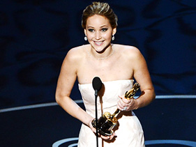 First-time winner fights her way to the stage to claim her award. By Brett White Jennifer Lawrence at the 2013 Oscars Photo: Christopher Polk/ Getty Images