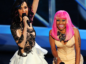 ‘I can’t believe she hasn’t even put out a record yet and she’s still Nicki Minaj!’ Perry tells MTV News. By Jocelyn Vena, with reporting by Audrey Kim Katy Perry and Nicki Minaj at the 2010 VMAs Photo: Kevin Winter/Getty Images Katy Perry and Nicki Minaj presented the Best Male Video award together at the VMAs , and it was evident that the two fun-loving pop stars shared a kinship. Their love of colorful costumes and fun music make it easy for fans to understand why they might get along, and Perry explained just what she loves about the Young Money princess. “I think Nicki Minaj is the truth,” she told MTV News at her alma mater, Santa Barbara, California’s Dos Pueblos high school, where she performed Tuesday night. “I think she is amazing, and I love her sense of style. I love her beautiful figure. It’s hot.” But it’s about more than just the aesthetic. She thinks Nicki has that certain “it” factor. “I like her whole attitude. She’s so funny and a chameleon, and you really don’t know exactly what you’re going to get from her, but you know it’s going to be entertaining at every corner,” she said. “She’s really fun. She belongs in this world. I’m very excited for her record. I can’t believe she hasn’t even put out a record yet and she’s still Nicki Minaj! It’s amazing.” When talking about fellow pop stars like Lady Gaga , Perry pointed out that the “over-the-top” aesthetic only works if the performer also has a “spine.” “Some people that are just like, ‘Look at me, I have something on my face or head’ — I don’t want to be specific because I don’t even know what I’m trying to say — they’re just not following through,” she said. “I like all that theatrical stuff, but at the end of the day, I like to strip it all off and sit down with my guitar and write a song.” Like Perry, Nicki hopes that her music can tell a story and resonate with people. “This album is my heart and soul,” the rapper said about Pink Friday, which arrives in November. “This is me explaining every single relationship that I’ve ever been in and explaining it in a way that every woman in this world can understand it.” Share your thoughts on Nicki Minaj in the comments! The Moonmen have all been handed out and the stars have gone home, but there’s plenty of MTV Video Music Awards news, interviews, behind-the-scenes scoop, party reports and more still to come, so keep it locked on MTVNews.com. Related Artists Nicki Minaj Katy Perry