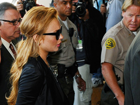 Actress leaves prison after posting $300,000 bail. By Mawuse Ziegbe Lindsay Lohan at Beverly Hills Courthouse Friday Photo: Kevork Djansezian/Getty Images After spending less than a day in prison, Lindsay Lohan was released after posting $300,000 bail. Los Angeles County Sheriff’s Department spokesman Steve Whitmore told The Associated Press that the actress left jail around 11:40 p.m. Friday night. Lohan was jailed Friday morning, a week after the actress admitted to failing a court-ordered drug test . Judge Elden Fox initially denied the troubled star bail and she was immediately taken into custody following her hearing. The move was reportedly designed to keep the actress in prison until her upcoming October 22 court date and reduce the chance of an early release due to overcrowding. However, Lohan’s lawyer, Shawn Chapman Holley, later insisted her client was entitled to bail and a second judge, Patricia M. Schnegg, overturned Fox’s ruling. Lohan is still due back in court next month. TMZ reports that Lohan is required to wear a SCRAM bracelet and avoid venues where alcohol is the “chief item of sale.” Lohan is familiar with the alcohol-monitoring device as she was outfitted with a SCRAM bracelet in May, which reportedly went off at an MTV Movie Awards afterparty. After serving 13 days of a 90-day jail sentence and 23 days of court-ordered rehab, Lohan recently conceded that she was still grappling with her addiction issues. “Regrettably, I did in fact fail my most recent drug test and if I am asked, I am prepared to appear before judge Fox next week as a result,” Lohan tweeted a week ago. “Substance abuse is a disease, which unfortunately doesn’t go away over night. I am working hard to overcome it and am taking positive steps forward every day. I am testing every single day and doing what I must do to prevent any mishaps in the future. … This was certainly a setback for me but I am taking responsibility for my actions and I’m prepared to face the consequences.” Related Videos Lindsay Lohan: Crime And Punishment Related Photos Busted! Celebrity Mug Shots Lindsay Lohan Goes To Court Related Artists Lindsay Lohan
