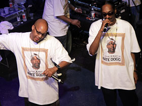 Annual Respect the West SXSW party became a tribute to the late singer, who died earlier in the week. By James Montgomery Warren G and Snoop Dogg perform at SXSW in Austin, Texas on Saturday Photo: Matt Harper/MTV News AUSTIN, Texas — Less than 15 minutes before he was set to hit the stage, Warren G sat in a dressing room deep within Austin’s Venue 222, wearing a white T-shirt emblazoned with the picture of his late friend and cohort, Nate Dogg, who passed away on Tuesday, reportedly from complications from multiple strokes . Obviously still dealing with the loss, Warren was silent, stoic and lost in his thoughts. And then, seemingly out of nowhere, he turned to MTV News’ cameras and said, with the upmost sincerity, “I honestly don’t know how this is going to turn out.” What he was talking about was his tribute to Nate Dogg, which capped off not only the annual Respect the West party (which showcases some of the West Coast’s hottest up-and-coming MCs) but the South by Southwest music festival, too. Throughout the night, DJs spun the classics that featured Dogg’s soulful voice on the hook — “Lay Low,” “The Next Episode,” “21 Questions” — and everyone from Kenan Bell to Kendrick Lamar had already made mention of his legacy during their performances, but really, it was the combination of G and his D.P.G.C. running mates Daz Dillinger and Kurupt that would serve as the final word. So when Warren G said he had no idea how their performance would turn out, you really couldn’t blame him. Sometimes, words fail us. But roughly an hour later, as G, the Dogg Pound and surprise guest Snoop Dogg were exiting the stage, each in a white Nate Dogg T-shirt, the strains of Snoop’s “Real Soon” (which featured Nate on the hook) still hanging in the air, it turns out those concerns were unwarranted. What had just transpired was a fitting tribute to their late friend, a man who, by all accounts, enjoyed his time on Earth to the fullest. In short, it was a celebration, of Nate Dogg’s life and his music, as presented by his closest friends and shared by every hip-hop fan who managed to cram inside Venue 222. Daz and Kurupt were the first to appear onstage, smoking blunts, tearing though “Who Ride Wit Us,” as the crowd — who had been waiting for nearly five hours for this moment — lost their minds. That insanity was only ratcheted up a few minutes later, when Snoop emerged from backstage, puffing a blunt of his own, rocking braids and shades, and the trio rolled through “Let’s Play House.” Soon, they were joined by Warren G, and, at full strength, they launched into the Snoop classic “Ain’t No Fun (If the Homies Can’t Have None)” — which featured one of Nate Dogg’s most memorable cameos — each man stepping to the front of the stage to deliver their verses. And at the end of the song, his worries subsided, G embraced Snoop and then cracked a wide smile. Warren then took a solo turn on his “This D.J.” and then the four men segued into the 213 track “Whistle While You Hustle,” a move appreciated by fans who have hung with the West Coast since before Dr. Dre’s The Chronic brought the music to the masses. The classics only continued from there — “For All My N—az & Bitches,” “New York, New York” (which saw a fiery back-and-forth between Snoop and Kurupt), Dre’s “Xxplosive” — the audience throwing their W’s up, the men on stage smoking and drinking in celebratory fashion. It all culminated, fittingly enough, with perhaps the two greatest songs Nate Dogg featured on: “Regulate” and, of course, “The Next Episode,” the latter of which featured Snoop pausing mid-song to exhale a plume of smoke heavenwards, and then, at the end of the song, in perhaps the most fitting tribute of all, the DJ cut the record and the entire crowd sang Nate’s famous “Hey, hey, hey, hey/ Smoke weed every day” sign off. It was highest moment of revelry in a night filled with them, a tribute to the man whose voice sold millions of albums, and who was responsible for some of the greatest hooks in history. Warren G most certainly will miss his friend, but he no longer has to worry about doing his memory justice. He and his West Coast brethren did that on Saturday night at South by Southwest, in the most fitting way possible: with a celebration. Related Videos Remembering Nate Dogg Related Photos Nate Dogg: A Life In Photos Related Artists Nate Dogg Warren G Snoop Dogg