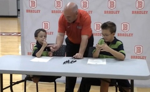 Bradley College Signs Terminally Ill 5-Yr-Old To Basketball Team This is such a great story … Via NBC Sports: No, this is not another story of recruiting gone bad. It’s the rare recruiting gone very right tale. On Friday, kindergartner Johnah Sahrs and his nine-year-old brother Jarrett signed letters of intent to join the Bradley Braves for the 2013-14 season. Johnah is battling the life-threatening condition neuroblastoma and his older brother has been doing what brothers do – helping his sibling get through the tough times. The brothers were introduced to the Braves by Team Impact, a non-profit organization that gets sick kids together with their favorite college teams. Bradley’s website went the whole nine yards, announcing the signing in a non-ironic press release that could touch the coldest heart. A 3-foot-4-inch guard, Johnah Sahrs will wear uniform number 1. He becomes both the youngest and the shortest player in Bradley Basketball history. Standing 4-foot-5-inches, Jarret Sahrs will wear uniform number 32. Senior guard Mason Alwan, sophomore guard Anthony Fields, senior center Jordan Prosser and freshman guard Jordan Swopshire gave the Sahrs brothers a tour of the Renaissance Coliseum facilities prior to the signing ceremony and will serve as their primary team mentors throughout the season. So wonderful! We hope little Johnah can beat his condition and live a long healthy life.