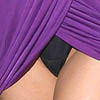 Alicia looks very cheeky wearing a purple dress with those black panties on show
