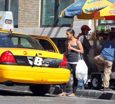 This baller’s wife was spotted leaving the Apple store in Soho via cab. The mother of three is wed to an NBA vet who recently switched teams. Can you name her NBA hubby? Hit the flip for the answer. AKM-GSI