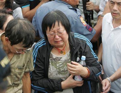 Relatives of the eight Hong Kong tourists who were killed in the hostage crisis cry during a Buddhist ceremony Tuesday Aug.24, 2010 at Rizal Park in Manila, Philippines. The Chinese authorities demanded answers from the Philippines on Tuesday after a 12-hour hostage drama in the heart of Manila ended with eight Hong Kong tourists and their Filipino hostage-taker dead following a day of botched negotiations. The Manila hostage crisis appears to be over, as television images show people climbin