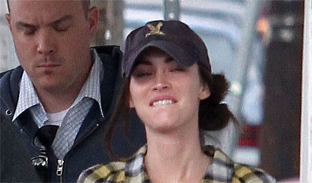I guess these aren’t that bad, you know with her making faces like she’s taking a shit, something that I’ve never found to be the most amazing thing to happen when a girl gets comfortable in the relationship, it’s usually a sign you need to run the fuck away, cuz comfort in shitting in front of each other means committment, unless you’re dealing with a crackhead or drunk who just takes a shit anywhere she is cuz she doesn’t know what fucking day it is, or if your dealing with the aftershock of anal sex, or if your fucking with someone with bowel disorders attached to a colostomy bag that someone got unattached from the hose, or if you’re German and into getting shit on, in which case, I guess it’s not all that bad….except maybe for the smell…. If you look close enough, you may be able to see her cunt hugged in her tight pants…. But she still fucking sucks, Megan Fox is dead, the only comeback she can make will be nude roles in movies, and trust me, that’s gonna happen… Being the hottest thing in Hollywood the studios are marketing is not forever, once the bitch gets cock, she’s easily replaced, because there is so much hot pussy in the world willing to do a lot more to get where Megan Fox is, so there’s no need to deal with ego or attitude…