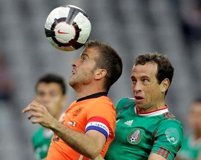 Netherland#39;s Rafael van der Vaart, left, and Mexico#39;s Gerardo Torrado, right, vie for the ball during their friendly soccer match between Netherlands and Mexico in Freiburg, Germany, Wednesday, May 26, 2010. Robin van Persie celebrated his first international match in six months by scoring two first-half goals, and an under-strength Netherlands squad beat Mexico 2-1 in a World Cup warmup match Wednesday. Manchester United-bound forward Javier Hernandez scored after the break, but a res