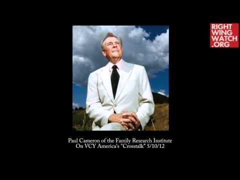 Paul Cameron of the Family Research Institute is an “expert” cited by groups like the Family Research Council , Concerned Women for America and the American Family Association , among others in the Religious Right . While his claims have been consistently discredited , Cameron is still a favorite of opponents of gay rights and appeared last week on Crosstalk with Jim Schneider of VCY America (Voice… Broadcasting platform : YouTube Source : Right Wing Watch Discovery Date : 14/05/2012 19:59 Number of articles : 2