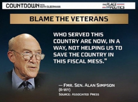 Olbermann Cherry-picks AP to Accuse Alan Simpson of Being Anti-Veterans