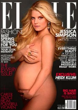 Apparently Jessica Simpson’s naked, pregnant body on the cover of April’s Elle magazine has not been well received by those at Safeway supermarkets. The attention-grabbing photo of Jessica Simpson nude has been covered up with pieces of cardboard and/or turned around, the Arizona Daily Star reports. A spokeswoman for the grocery chain said it made the move to censor the cover following “multiple complaints” about the Fashion Star mentor’s photo. Simpson said in an interview that that Demi Moore and Britney Spears -like fully nude, pregnant cover pic was all her idea. Well, and their idea. But in this case: “They didn’t even ask me to do that,” she said on Ryan Seacrest’s KIIS-FM radio show. “It was my idea. It kind of just seemed a natural thing for me to do.” “I’m like 170 pounds and I wanted to pose nude,” she explained. “I try to be like 110. It’s funny to be at your heaviest and feel the most confident. I just take such pride in being a mom! I just love my body more than ever now.” What do you think of the cover photo above?