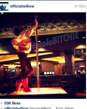 Yes. That is Willow Smith . On a stripper pole. In Vegas, no less. Earlier today, this photo was posted on Willow’s official Twitter page. Of course, it was almost immediately deleted. Which is reassuring: between Roc Nation, Will and Jada, someone clearly took the time to explain to her why that was in no way shape or form a good look. (We hope). But, umm, 538 likes??? SMH Source More On Bossip! Blue Ivy Ain’t The Only One: More Stars With Guts Full Of Human Ready To Pop In 2012 Love Triangles: A History Of Men Fighting Over The Same Woman Knocked Up??? Is Eva Longoria Carrying Around A Gut Full Of Penelope Cruz’s Brother??? [PICS] What’s Wrong With This Picture? Look At All The Beckys That Make Up “The World’s Most Perfect Woman”