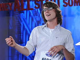 ‘You might be my favorite so far,’ J.Lo tells the unassuming student teacher in Milwaukee. By Adam Graham Scott Dangerfield auditions on Wednesday’s “American Idol” Photo: FOX Sometimes talent catches you off guard, and Scott Dangerfield came into his Milwaukee audition on Wednesday’s (January 26) “American Idol” episode without a hard-luck tale or a weepy backstory. But he left elevated on a cloud of praise and was dubbed by Jennifer Lopez as her “favorite” contestant thus far. The first thing the judges noticed about Dangerfield, an unassuming 22-year-old student teacher in Milwaukee, was his lips, and how he appeared to be wearing lipstick. Blushing, he wiped off his lips. “I was kissing one of the girls backstage!” Dangerfield said, prompting Jackson to make a crack about a potential love connection. “More than one destiny is going to be made for me today,” Dangerfield joked. With his shaggy haircut, black framed glasses and bookish outfit — he wore a button-down shirt with the sleeves rolled up and a casual pair of shorts — Dangerfield gave off a slight Clay Aiken vibe, albeit cooler than the season-two contestant. And when he sang, it was similarly surprising: He did Amos Lee’s 2005 song “Dreamin’ ” and infused it with his rich, soulful tone, made smoother by his easygoing style. There were no nerves on display as he sang, and Dangerfield sailed through the audition. The judges were floored. “You might be my favorite so far,” Lopez beamed. “I swear! Wow!” She pushed for a quick vote, giddily bouncing in her chair and repeating “I want to vote!” like a toddler trying to get her way. Yes, Dangerfield managed to turn J.Lo into a pile of mush. Following Lopez’s yes vote, Randy Jackson offered one of his trademark over-the-top endorsements — “hundred million percent yes” is just the same as “100 percent yes,” Randy — and Steven Tyler chimed in by saying, “We’ve been waiting all day for you.” But Lopez still wasn’t finished gushing: “Keep the hair, keep the glasses, I like all of it,” she said, reiterating, “You’re my favorite.” In the hallway outside the judges’ room, Dangerfield was greeted by a group of friends, to whom he bragged about Lopez’s praise, saying it almost caused him to faint. But he had earned his right to gloat: Unlike his namesake Rodney, this Dangerfield got plenty of respect. What did you think of “American Idol” on Wednesday? Let us know in the comments! Get your “Idol” fix on MTV News’ “American Idol” page , where you’ll find all the latest news, interviews and opinions. Related Artists Jennifer Lopez