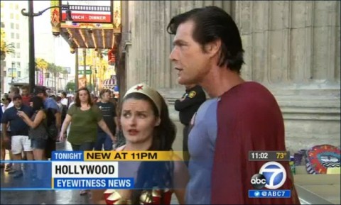 "Superman" saves "Wonder Woman" on Hollywood Blvd. [PICS]